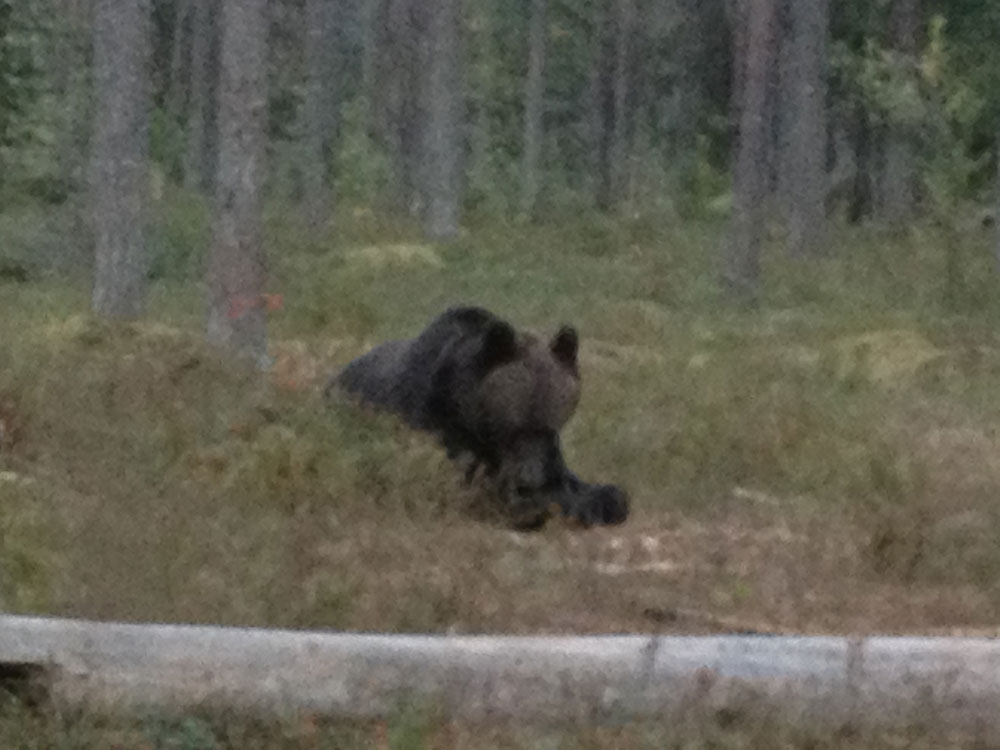 Kimmo kutsui minut Kuhmoon, Boreal Wildlife Centreen, katsomaan petoja saman vuoden syksyllä. Ekana yönä tarkastelin piilokojusta ahmaäitiä ja lastaan, jotka vilistivät pitkin kallionrinnettä haeskellen kivikkoon viskottua koiran kuivamuonaa. Karhujakin oli. Otsoja voimakkaammin mieleeni jäi emakon ruumis, joka oli tuotu kojun luo haaskaksi houkuttelemaan metsäneläimiä. Emakko oli paikalliselta sikatilalta, suorittanut loppuun palveluksensa ihmisen alaisuudessa. Paluumatkalla näimme uskomattoman kauniin metsäpeuran, joka juoksi hetken auton rinnalla.